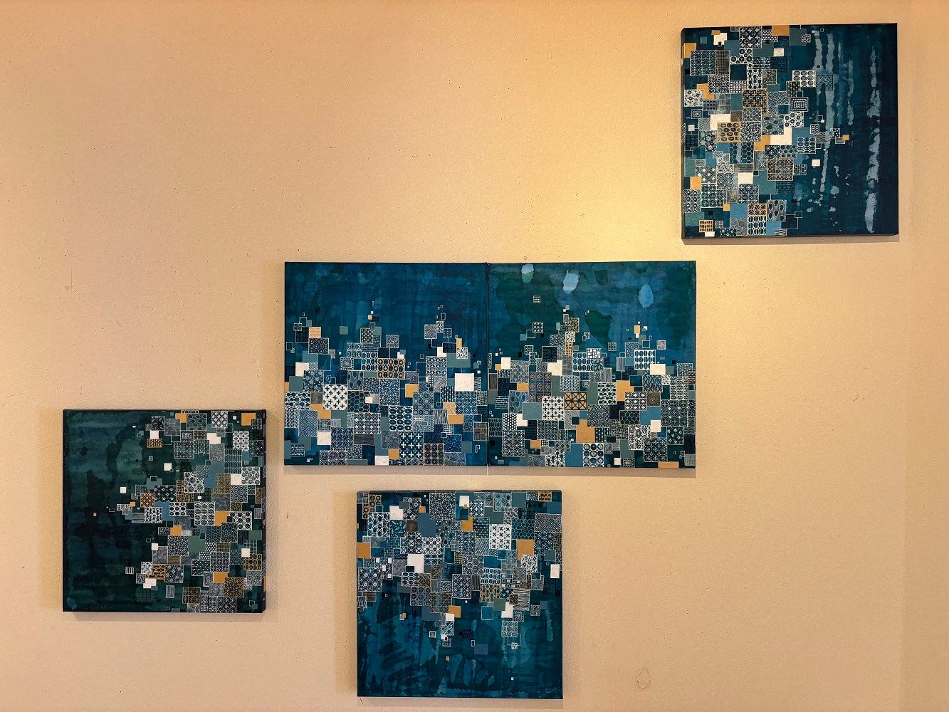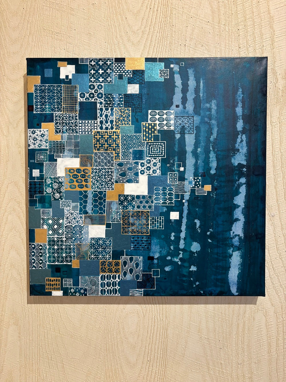 独自の視点で日常の物を模様化し日本的な幾何学模様とのミックスが織りなす美しいアート作品です。フリーハンドで描かれた特徴的なデザインは、見る者ごとに違った表情を持ち、同じ模様は存在しない点が魅力です。また、360度向き変更可能なこの作品は、どの角度から見ても新たな発見がある特別な存在です!