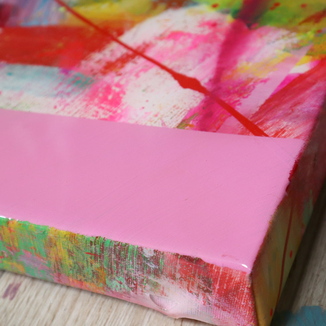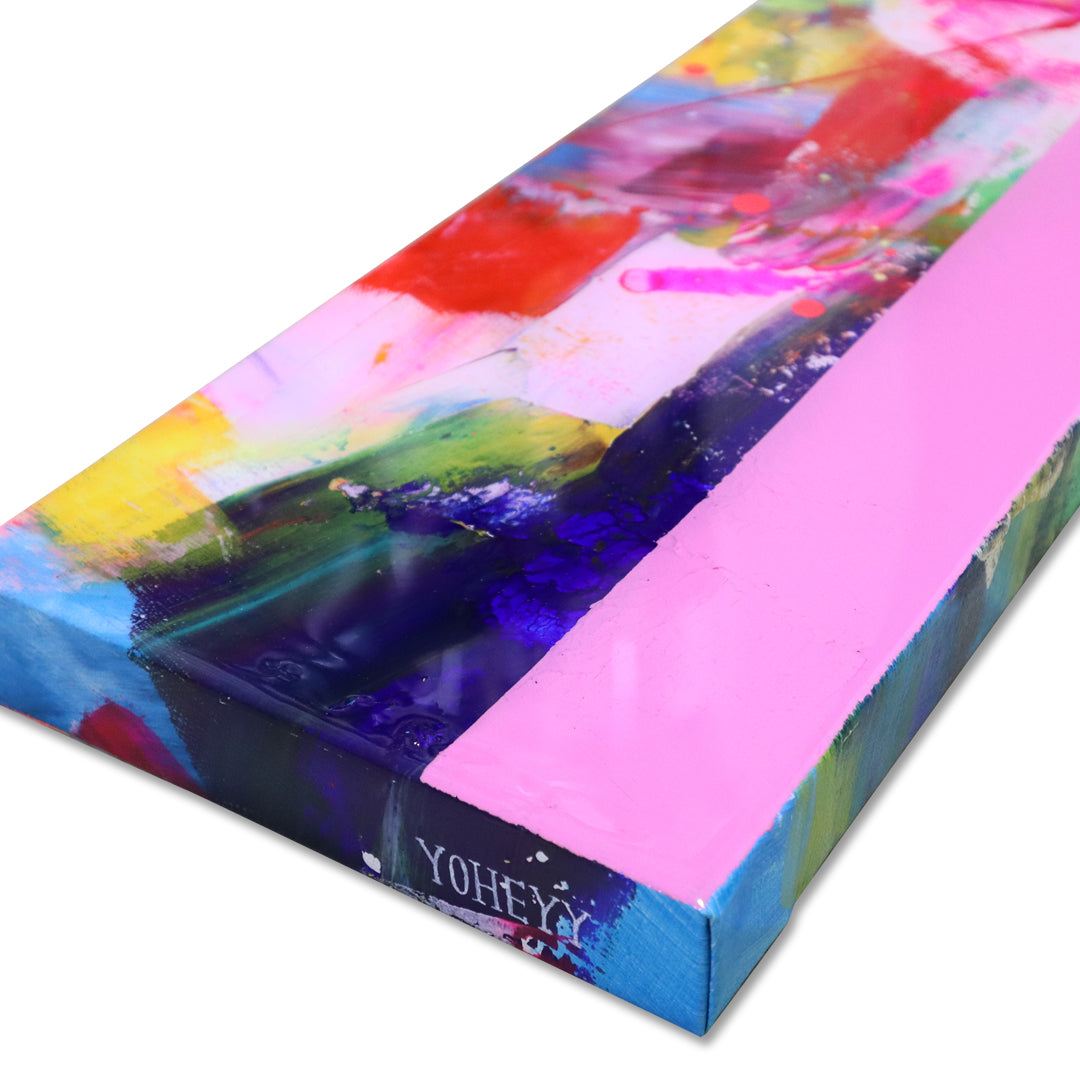 アクリル絵具とレジンを巧みに組み合わせた美しいアート作品。正面の光沢のあるレジンとサイドのマット感の対比が際立ち、色彩が舞うように複雑な層を形成しています。見る者を魅了するこの作品は、単なる視覚的な楽しさだけでなく、心を豊かにする色のメロディーを奏でます。あなたの生活空間に彩りを加える特別なアイテムとして、ぜひお楽しみいただければと思います!